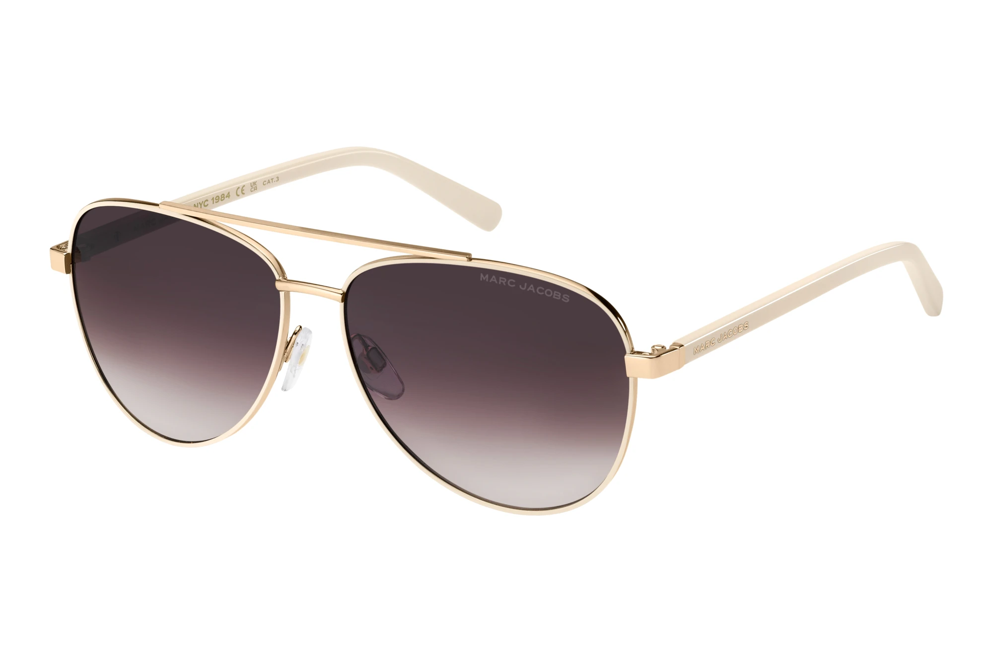 La monture de lunettes est crée pour les femmes actives. Une conception gracieuse et expressivité se combinent pour classique chic. Cette incarnation des lunettes de pilote de la maison Marc Jacobs se distingue par les grands verres caractéristiques et la monture mince. Non seulement dans le cockpit d'un avion, le modèle est un coup sûr. Le cadre métallique est très facile confortablement à porter. Il est robuste et élégant du même temps. Même fonctionnellement vous êtes bien sûr sur le côté sécuritaire. Le soleil peut venir avec une protection UV à 100% pour les yeux.