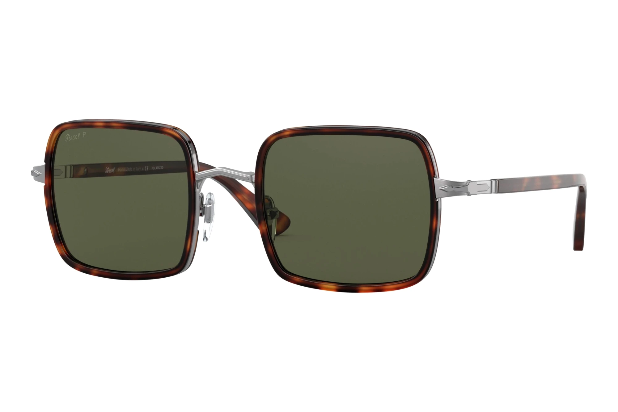 Ce modèle de Persol est un véritable multi spécialiste pour les hommes et les femmes aussi. La version carrée carré est une forme classique, indiquant expressive sur la rectitude de la personnalité. Le cadre métallique est très facile confortablement à porter. Il est robuste et élégant du même temps. Gris convient à tous les styles et toutes les tenues. Il et bon pour presque tous les types de peau et est beaucoup plus discret que le noir. Les lunettes en gris sont les compagnons idéals au quotidien. Le vert est une couleur populaire pour les verres de lunettes de soleil. Il déforme les impressions visuelles seulement légèrement et convient donc également bon pour la routière. Bien sûr, ces lunettes de marques offrent une protection UV400 optimale pour vos yeux. Que ce soit sur la route ou sur les pistes, la propre sécurité est le plus importante. A travers les lunettes polarisantes dans ce modèle la lumière que reflets de surfaces réfléchissantes, telles que le verre, d'eau ou la neige, sont supprimé. La meilleure vue est garantie.
